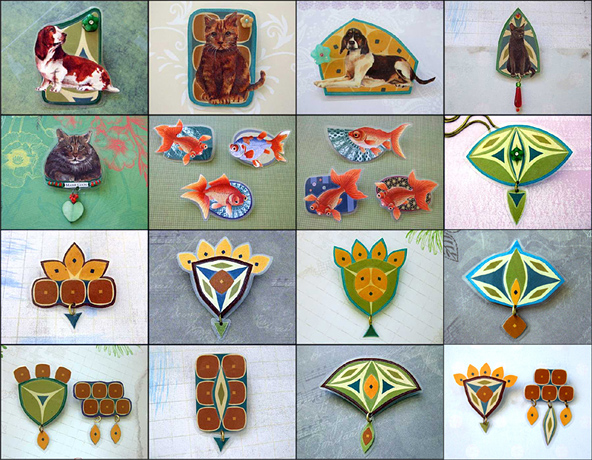 Broschen aus Geschenkpapier - Bilder anklicken für Details